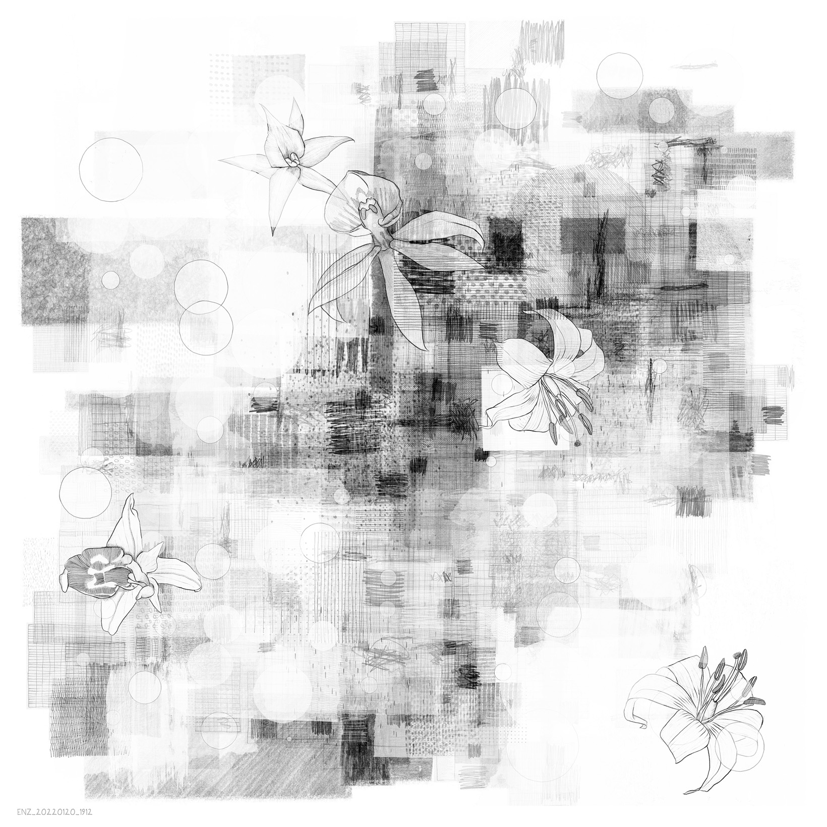 One-off giclée print on paper from a unique run of code using images made with pencil and paper.
